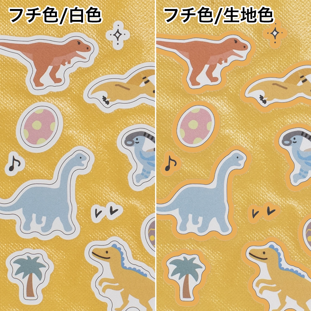 コピー転写印刷(フルカラー):PP不織布に印刷。フルカラー印刷した図案を転写プレスでのせるため、必ずフチが出ます。