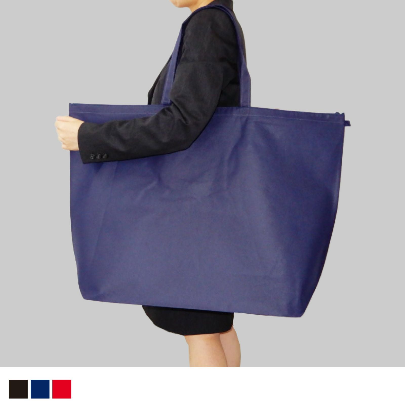 アウターや家電製品まで収納可能な、大判サイズの不織布バッグです。