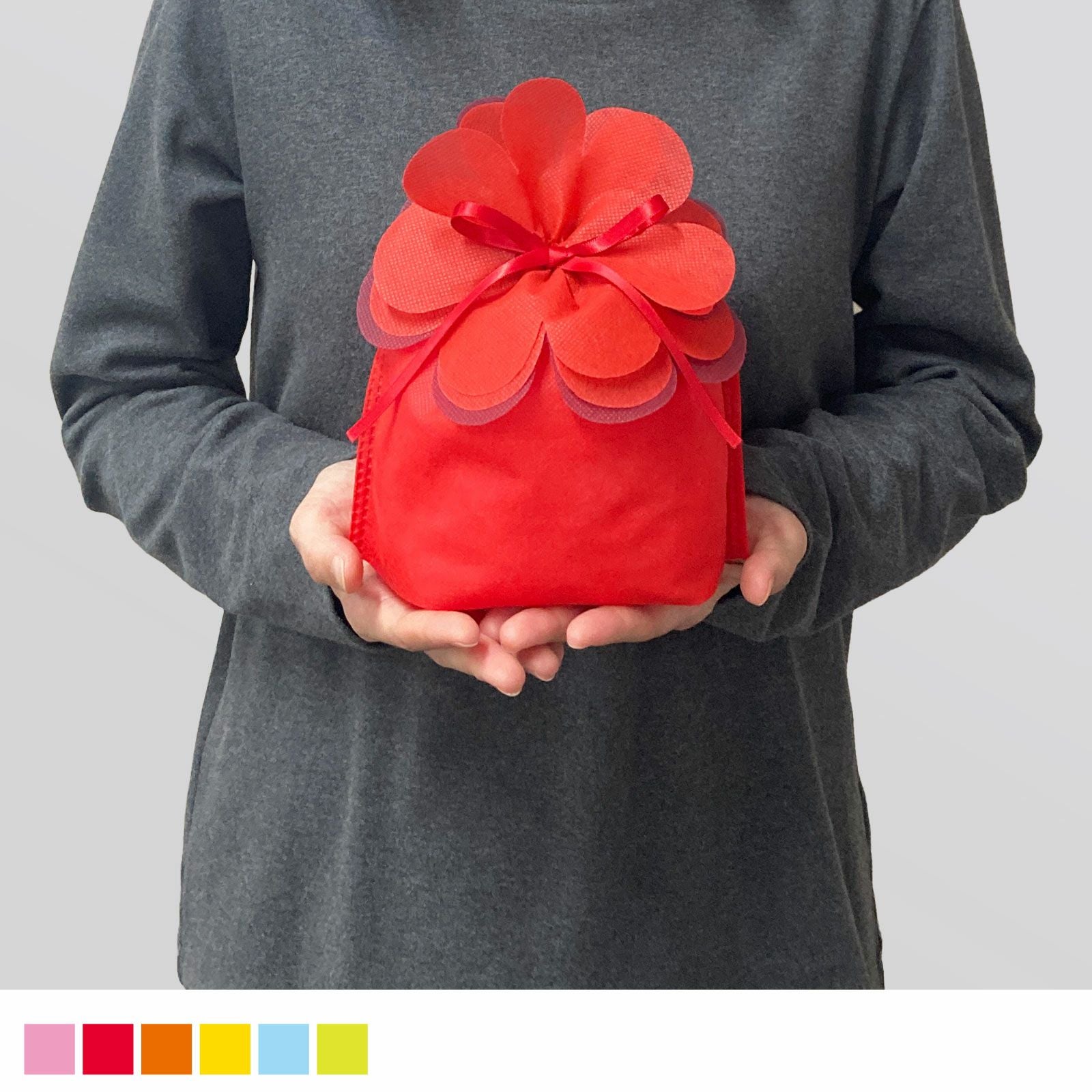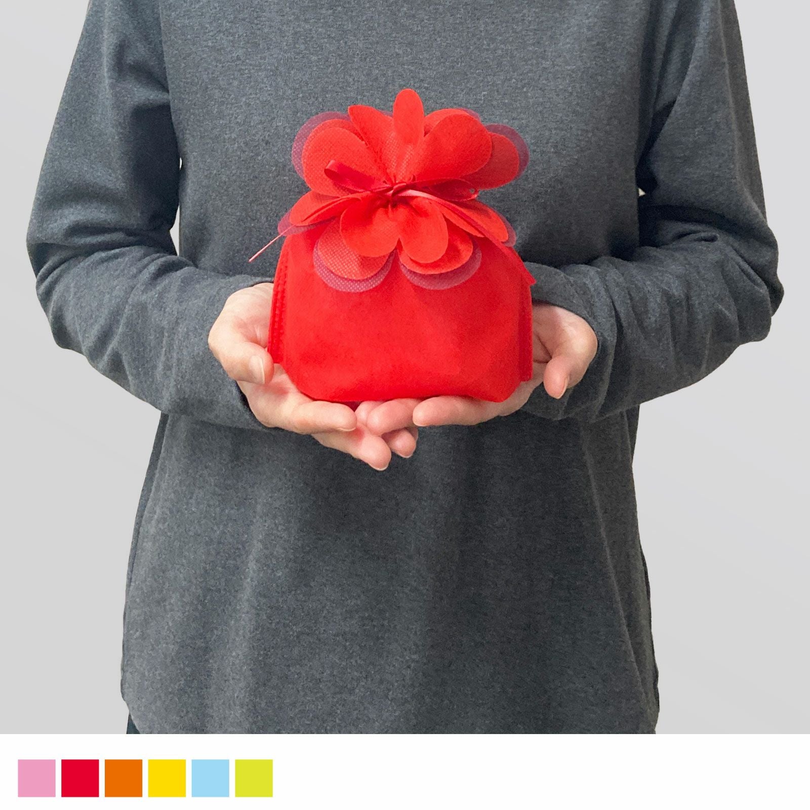 赤、オレンジ、マスカットグリーン、パステルブルー、ライトピンク、イエローの全6色展開。母の日、ホワイトデー、バレンタインなどのイベントにも活躍します。
