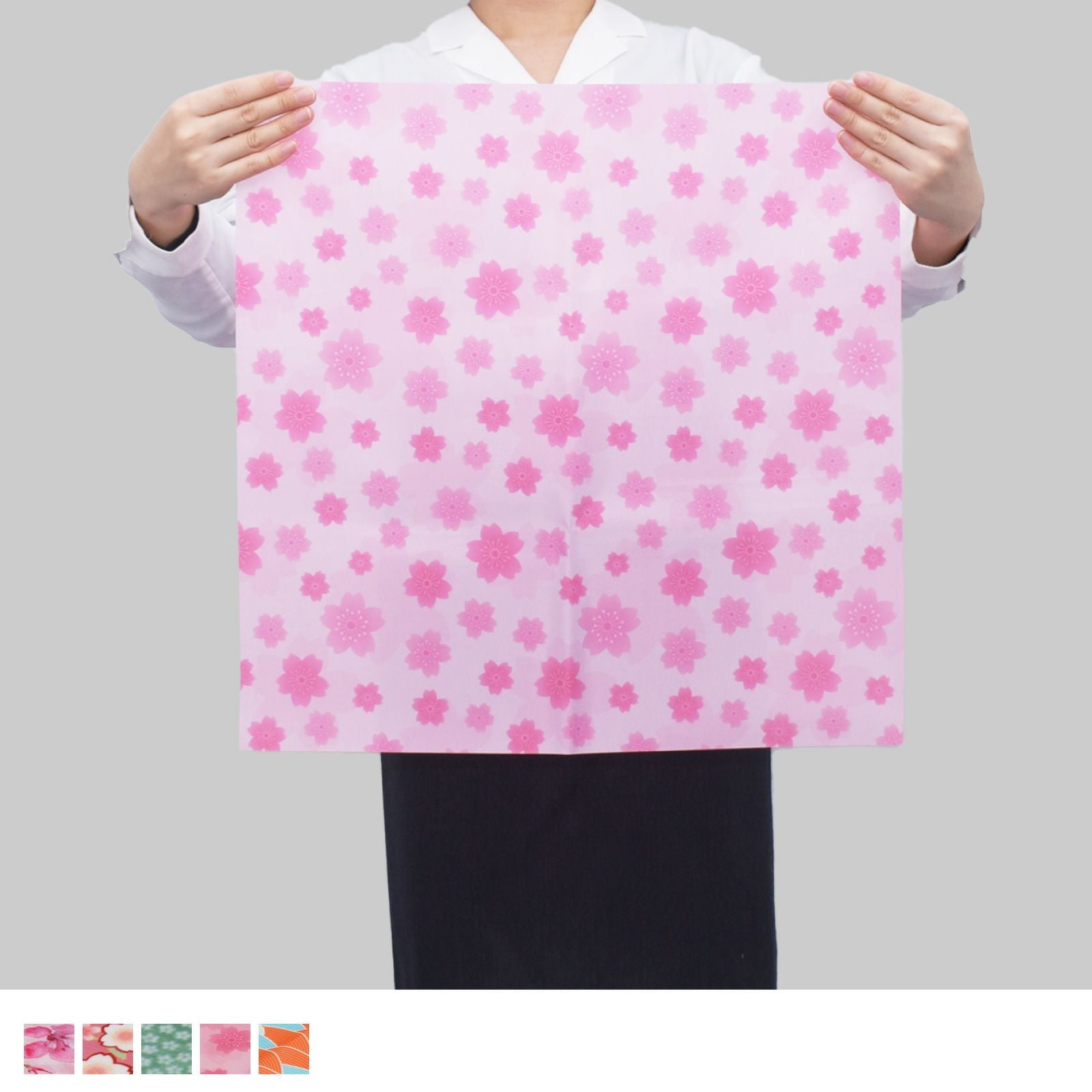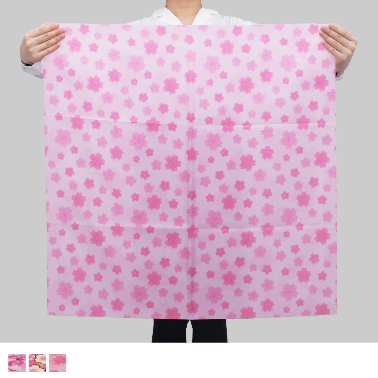 春らしい花柄など全5柄をご用意しており、売場を華やかに彩ります。包んで良し、敷いて良しの使い勝手の良さが特長です。