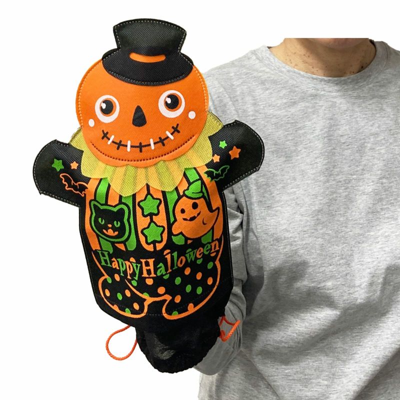 ハロウィンに遊べるジャックオランタン パペット型巾着袋ラッピング 【ハロウィン】ジャックオランタンパペット|不織布ラッピング袋|20枚入