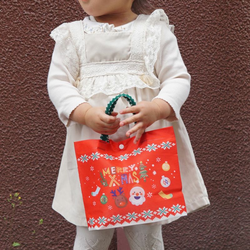 華やかな取っ手付き!Xmas限定の大容量巾着袋ラッピング 【クリスマス】リボンバッグ オーナメント柄|不織布ラッピング袋|20枚入~