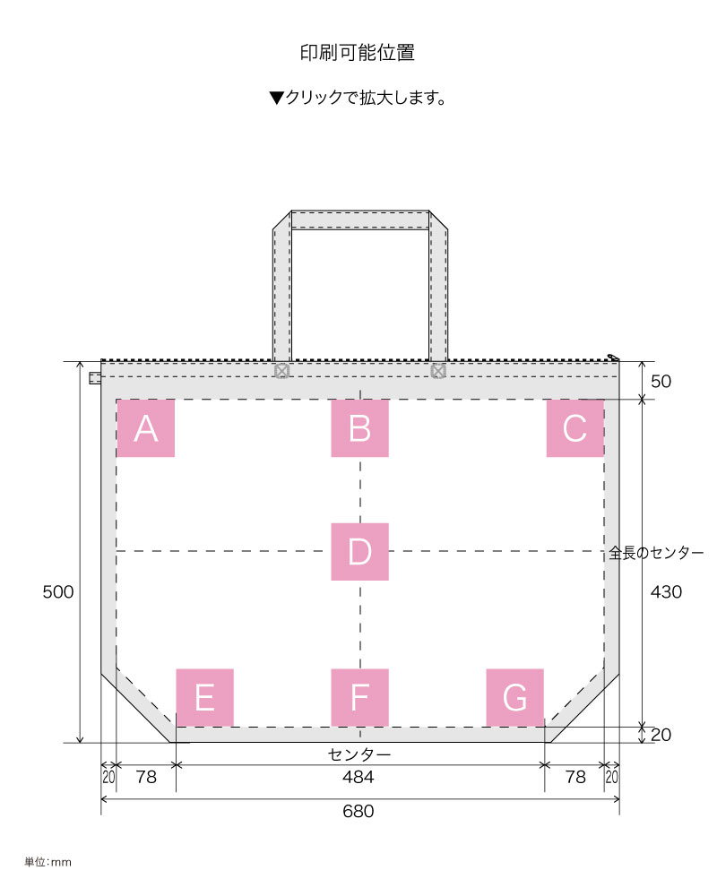コピー転写印刷(単色):PP不織布に印刷。フルカラー印刷した図案を転写プレスでのせるため、必ずフチが出ます。