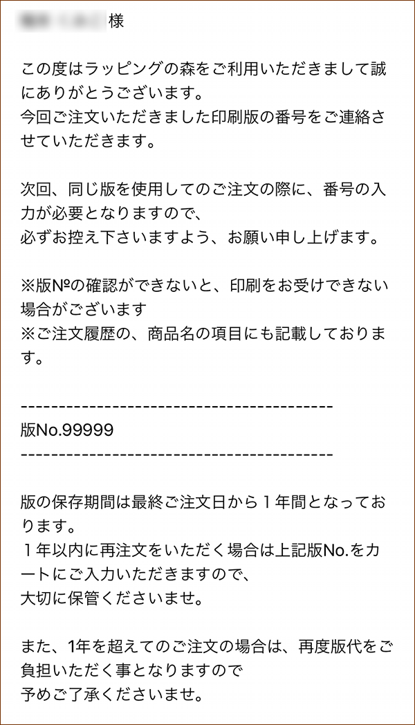 また、ご購入後のサンクスメールにも版№を記載してお送りしておりますのでご活用ください。 -