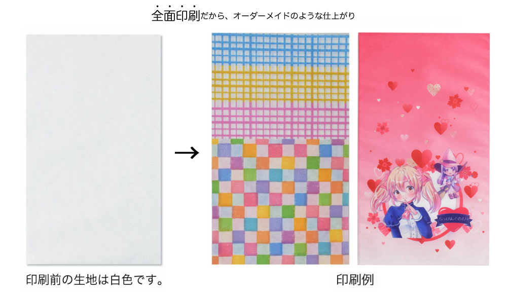 高温転写印刷では、モニターやお手元のプリンターで出力した色と、生地への転写後の色合いが多少異なることがあります。