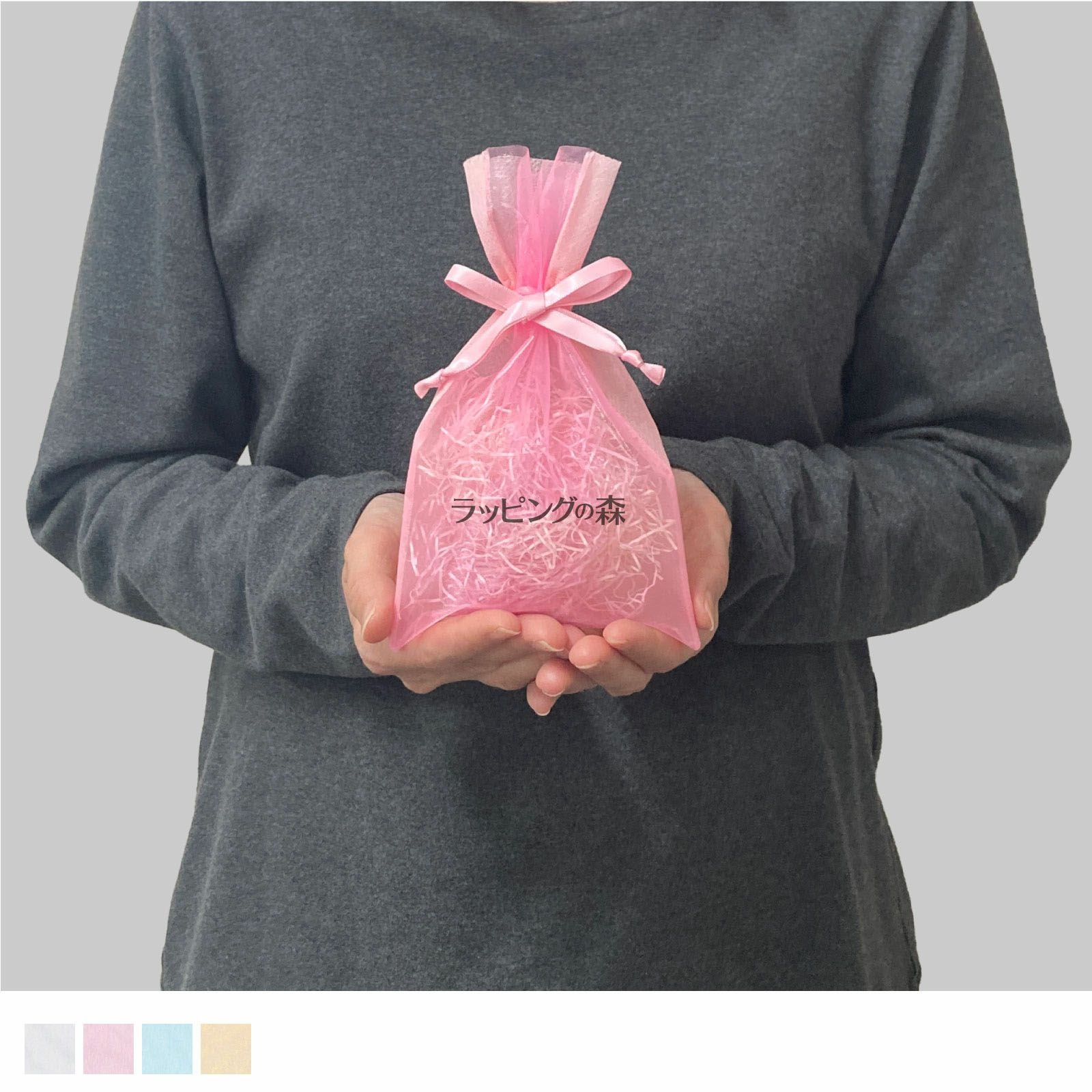 前面オーガンジーと背面不織布を組み合わせた高品質な巾着袋。アクセサリーや小物ギフトにぴったりです。