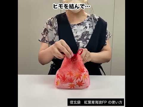 「信玄袋 紅葉青海波FP」は、日本の伝統文様「青海波」に鮮やかな紅葉柄を重ねた、秋限定の信玄袋ラッピング。落ち着きのある色合いと上品なデザインで、秋の贈り物や和のギフトにぴったりです。